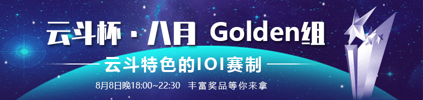 另外,如果你在本场比赛【云斗杯 · 八月 Golden 组模拟赛】里获得了大于等于 100 分的成绩,可以凭此成绩截图获得 9 折的课程价格优惠!欢迎点击下面图片以获取详细信息!